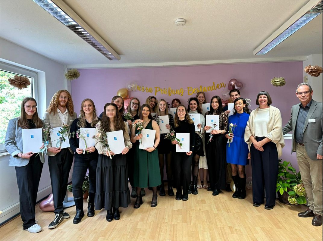 Geschafft, am 26. September erhielten 16 Auszubildende aus dem Kurs ET24 ihre Zeugnisse und Urkunden im Rahmen einer gelungenen Examensfeier. Der Regionaldirektor Alexander Schneider, die Schulleitung Christine Wagner und das gesamte Team der Ergotherapie Schule Mainz gratulieren zum erfolgreichen Abschluss und wünschen allen frisch examinierten Ergotherapeut:innen einen guten Start ins Berufsleben.